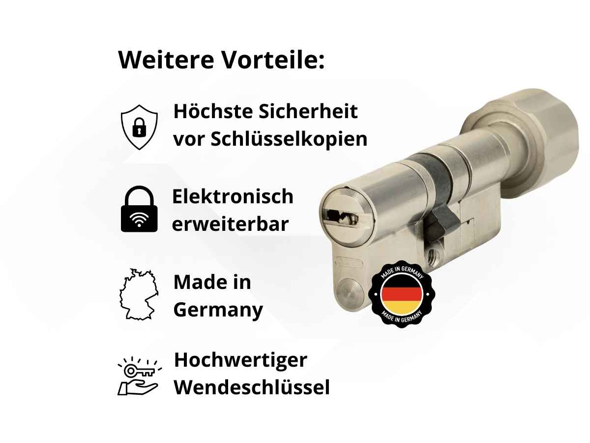 Vertrauen Sie auf Perfektion aus Deutschland und erleben erstklassige Zuverlässigkeit zusammen mit patentiertem Schutz vor Zylindermanipulation.
