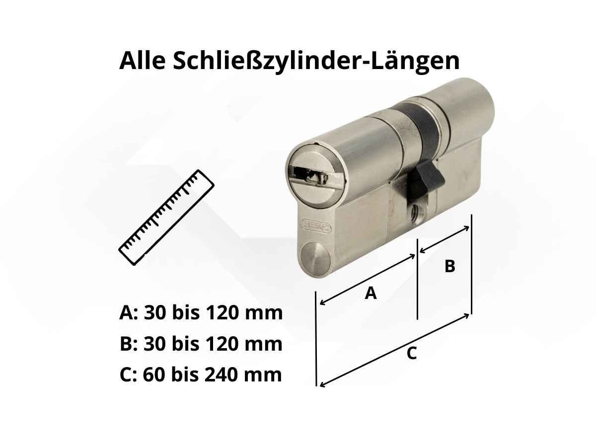 Wie Sie den Schließzylinder richtig ausmessen und austauschen, erfahren Sie in unserem Ratgeber zum Zylindertausch.