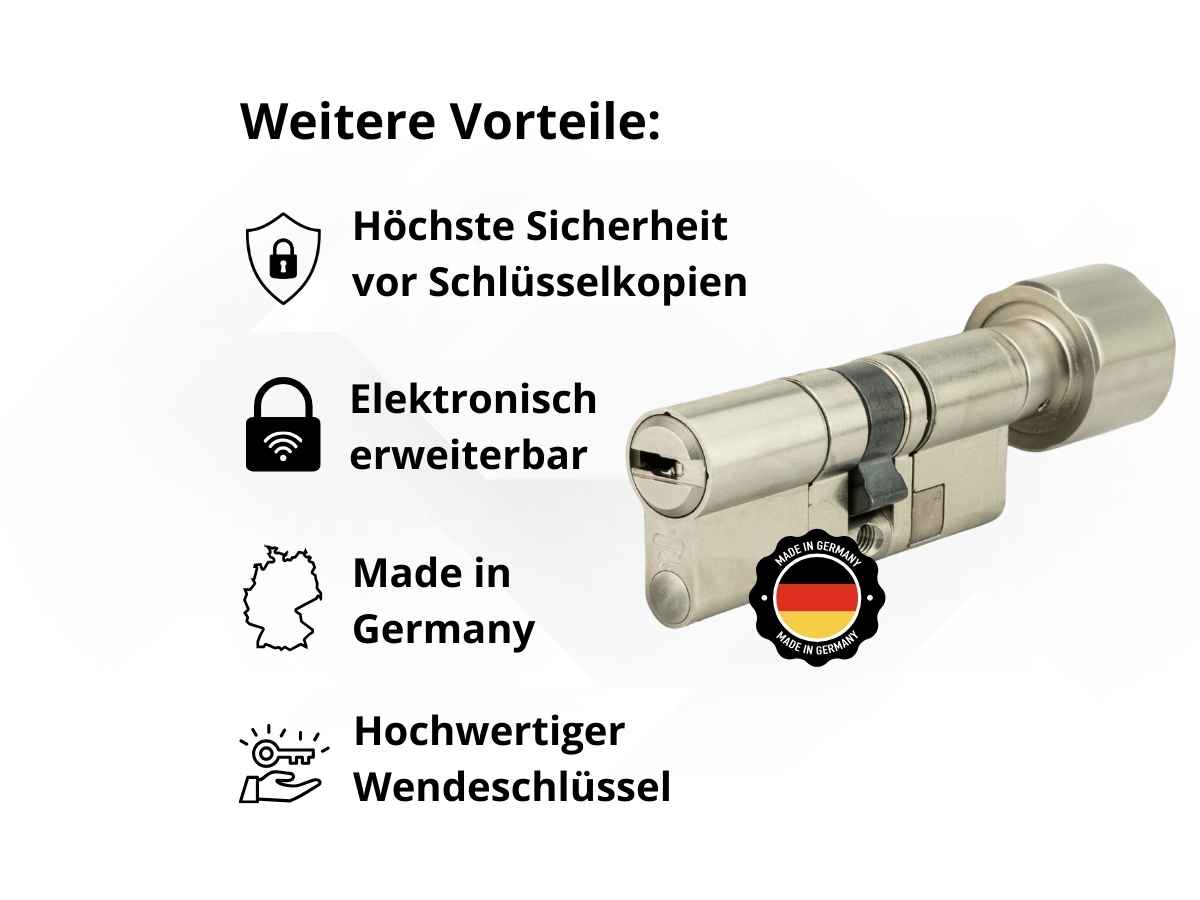Vertrauen Sie auf Perfektion aus Deutschland und erleben erstklassige Zuverlässigkeit zusammen mit patentiertem Schutz vor Zylindermanipulation.
