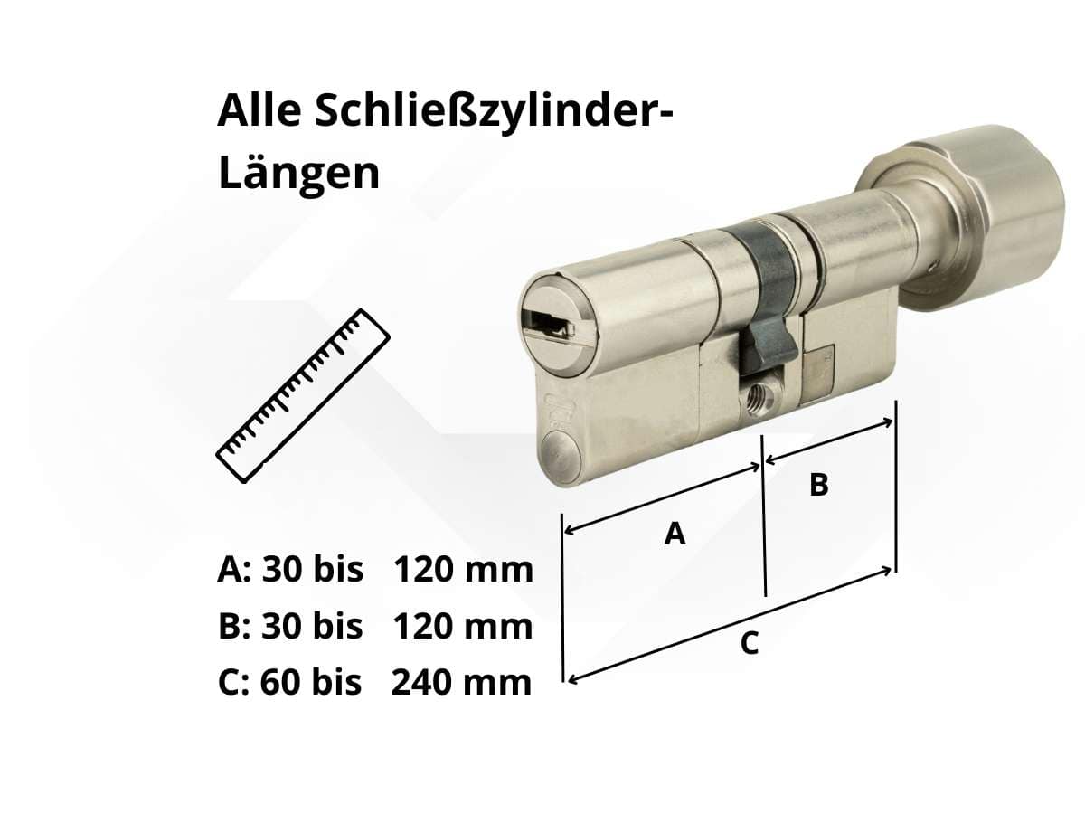 Wie Sie den Schließzylinder richtig ausmessen und austauschen, erfahren Sie in unserem Ratgeber zum Zylindertausch.