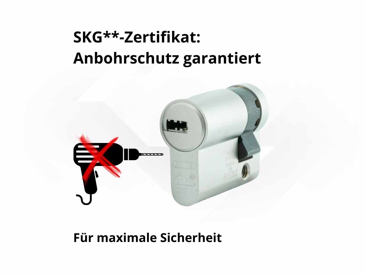 - SKG**-geprüfter Anbohrschutz durch gehärtete Stahlstifte