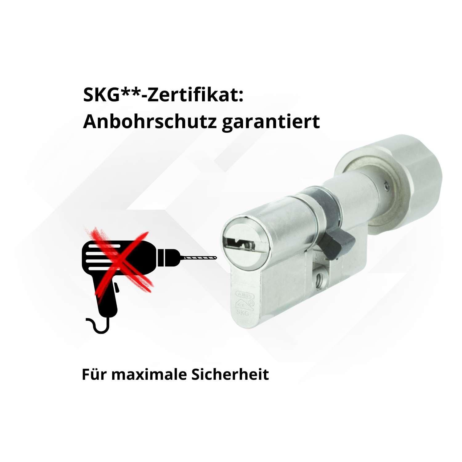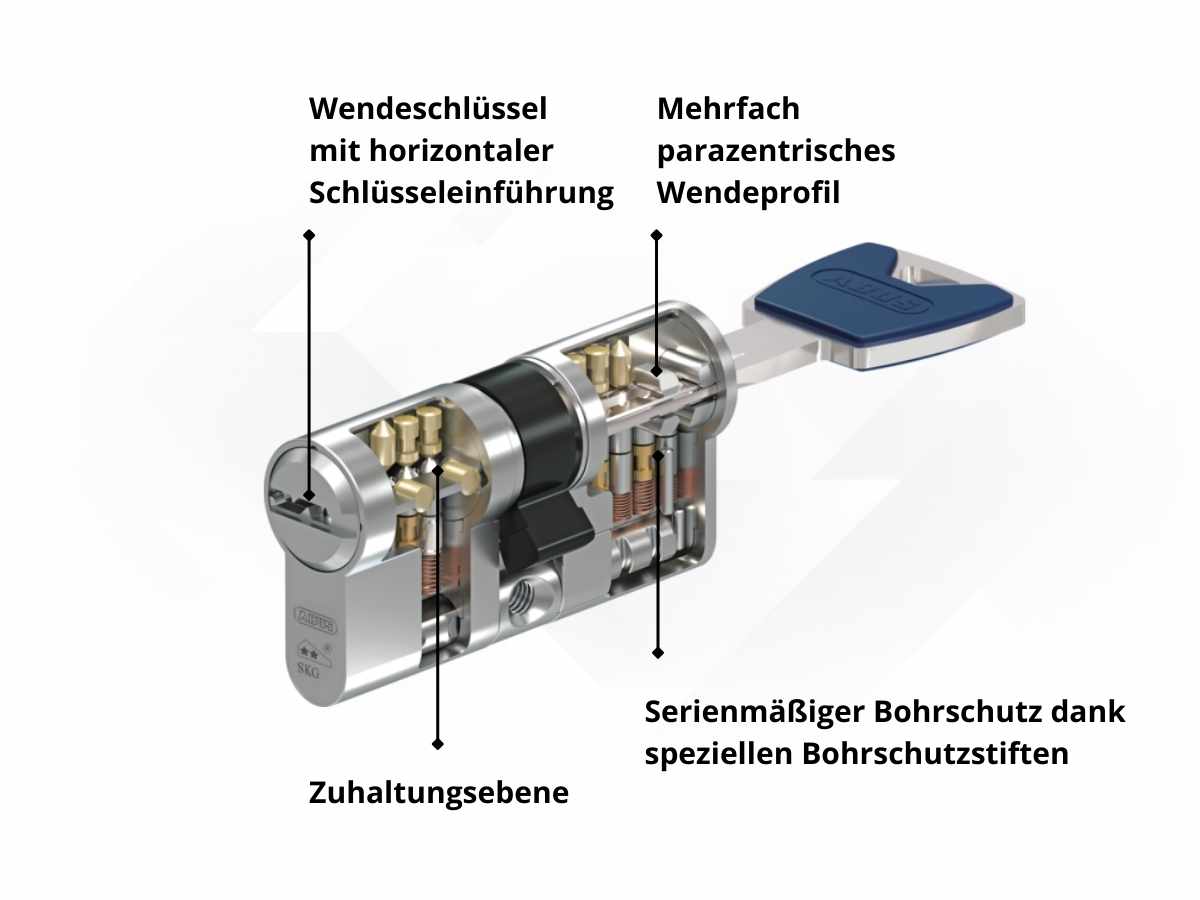 - SKG**-geprüfter Anbohrschutz durch gehärtete Stifte und Bohrschutzbrücke