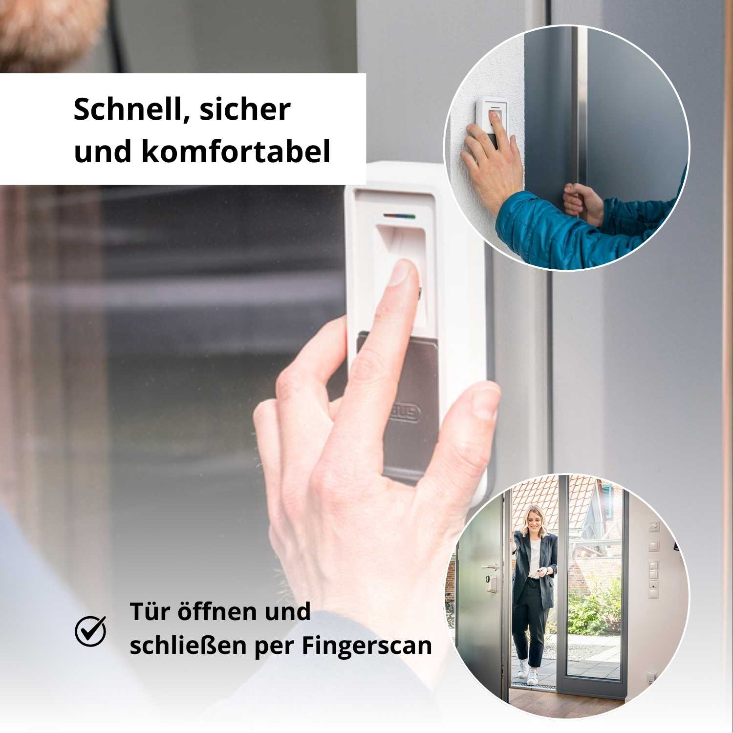 - Individuelle Zugangsberechtigungen: Speicherung und Verwaltung von bis zu 20 Fingerabdrücken über die ABUS One-App.
