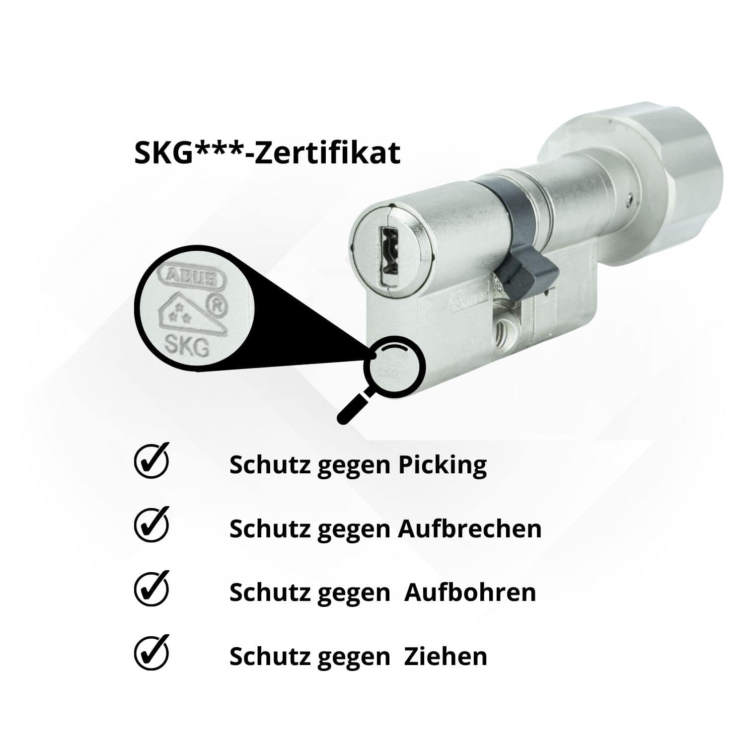 - Verschlusssicherheit gemäß DIN EN 1303, Klasse 6
