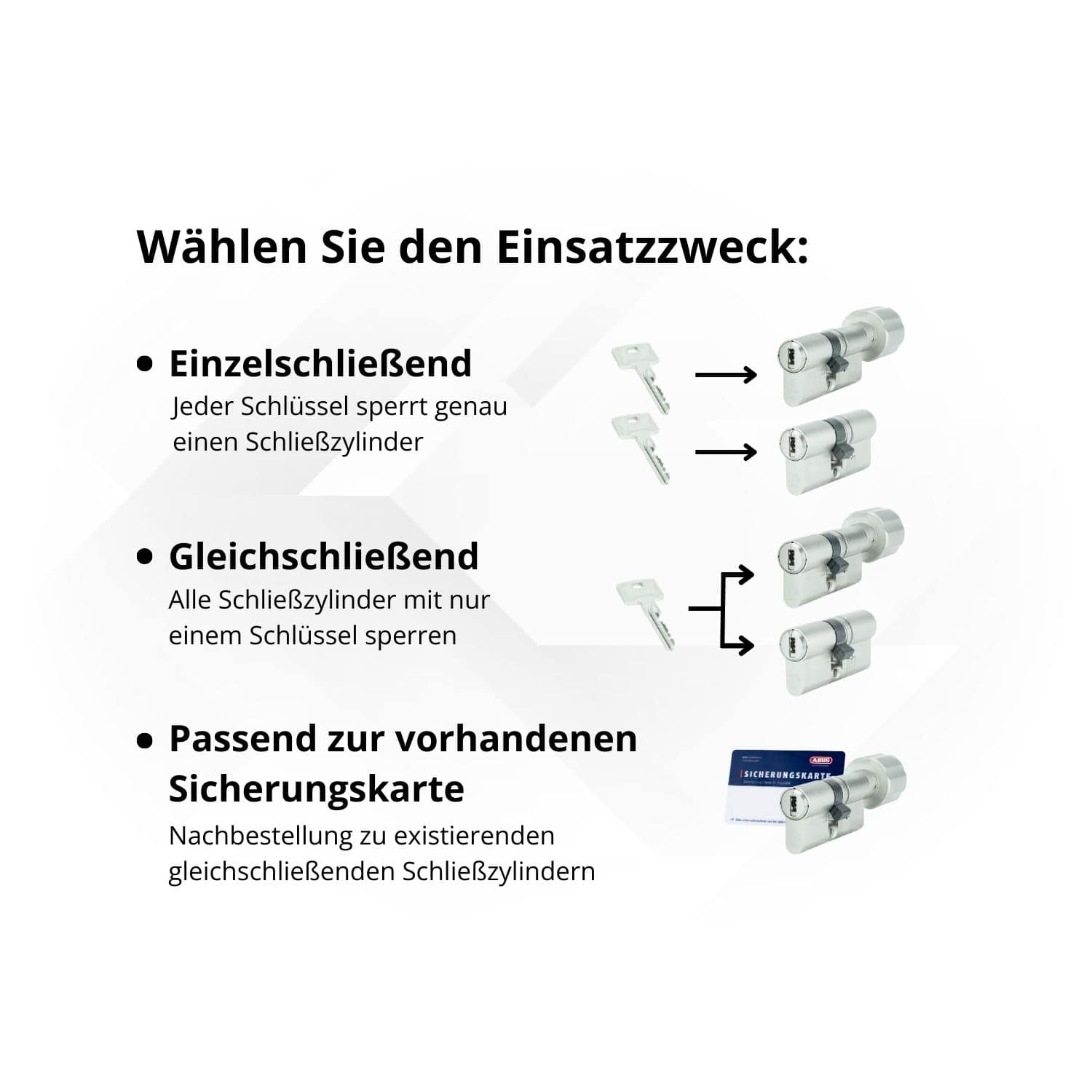 - Erweiterter Kopierschutz: Ersatzschlüssel nur gegen Sicherungskarte erhältlich