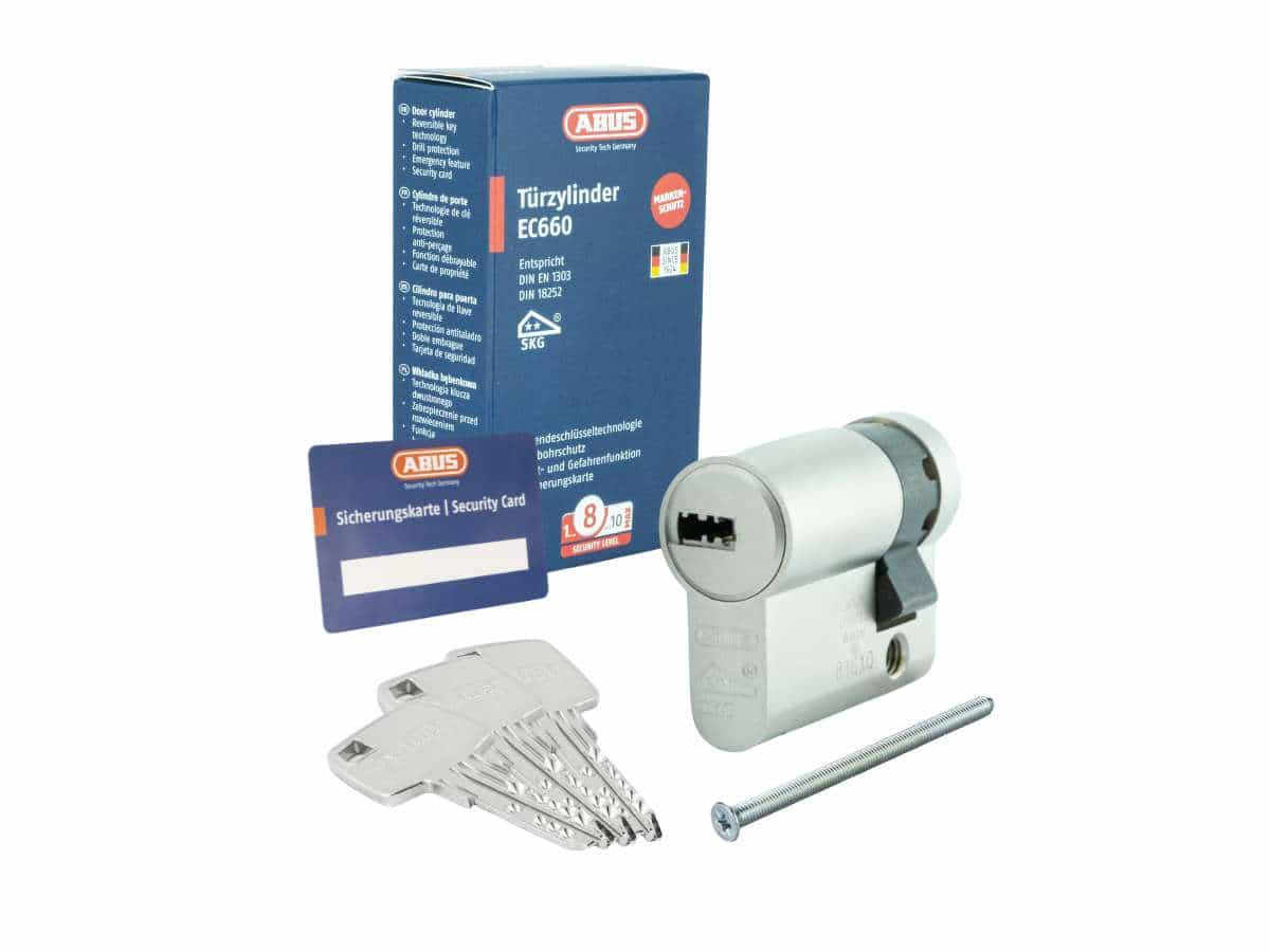 Als kostengünstigere Lösung ohne Sicherungskarte eignet sich der ABUS EC550 Halbzylinder. Wer mehr Flexibilität und Ausstattung wünscht, trifft mit dem ABUS EC880 Halbzylinder eine erweiterbare Wahl mit modularem Aufbau.