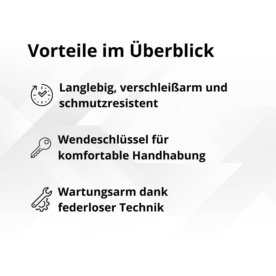 Erleben Sie die einzigartige Widerstandsfähigkeit dieses Schließsystems. Sie können sich darauf verlassen, dass das System funktioniert - selbst bei extremen Temperaturen und hoher Schmutzbelastung.