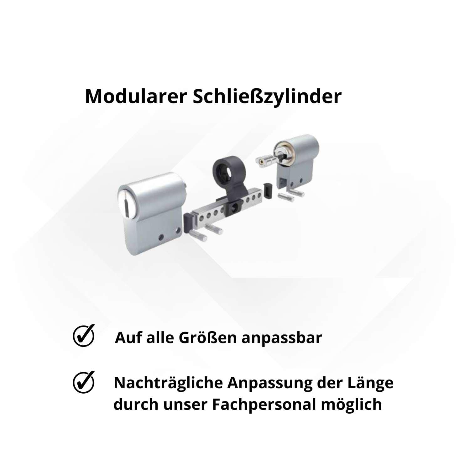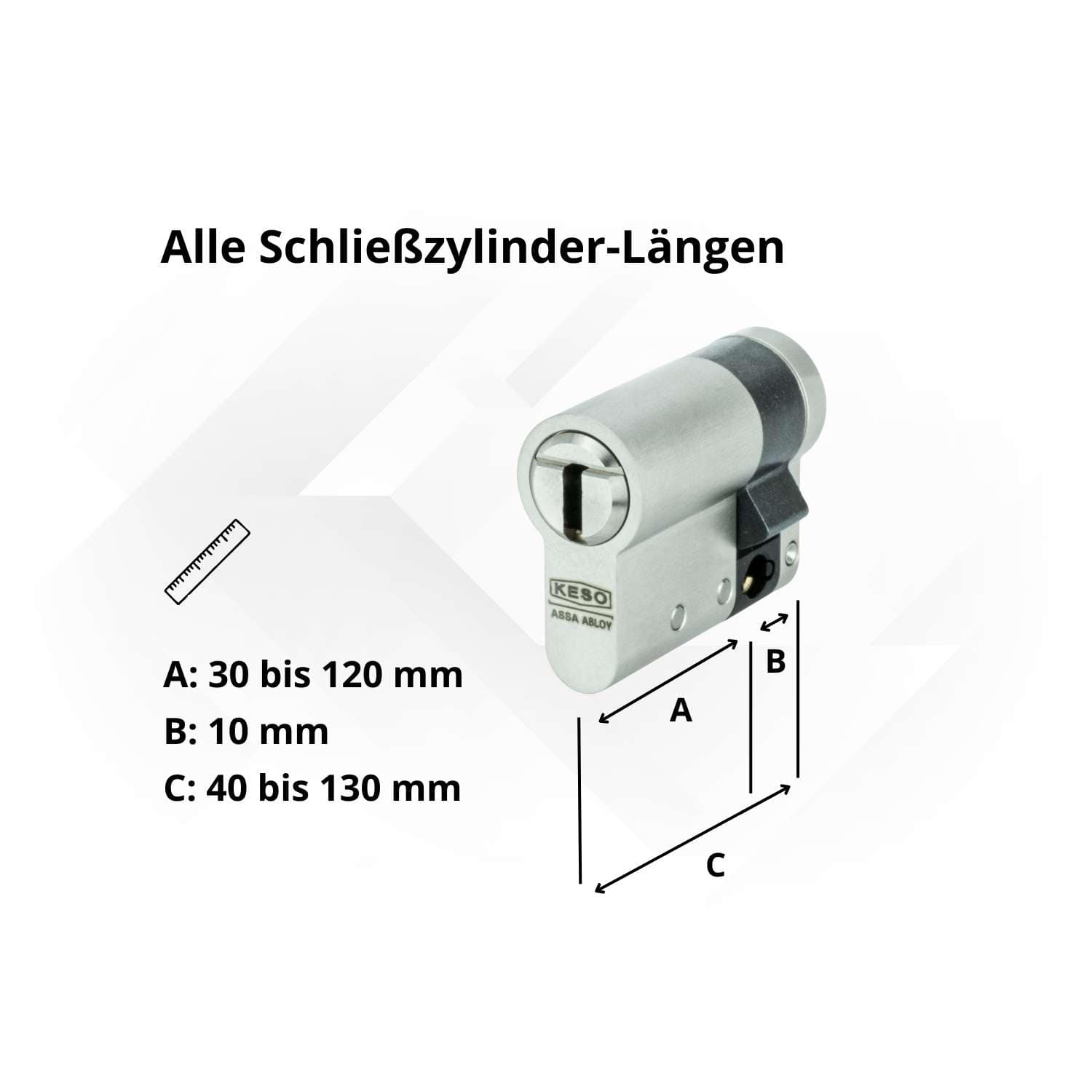 Der Zylinder lässt sich über das modulare KESO-System flexibel an verschiedene Türstärken anpassen und problemlos in Schließanlagen integrieren. Für individuelle Planungen steht Ihnen unser KESO-Schließanlagen-Konfigurator zur Verfügung.