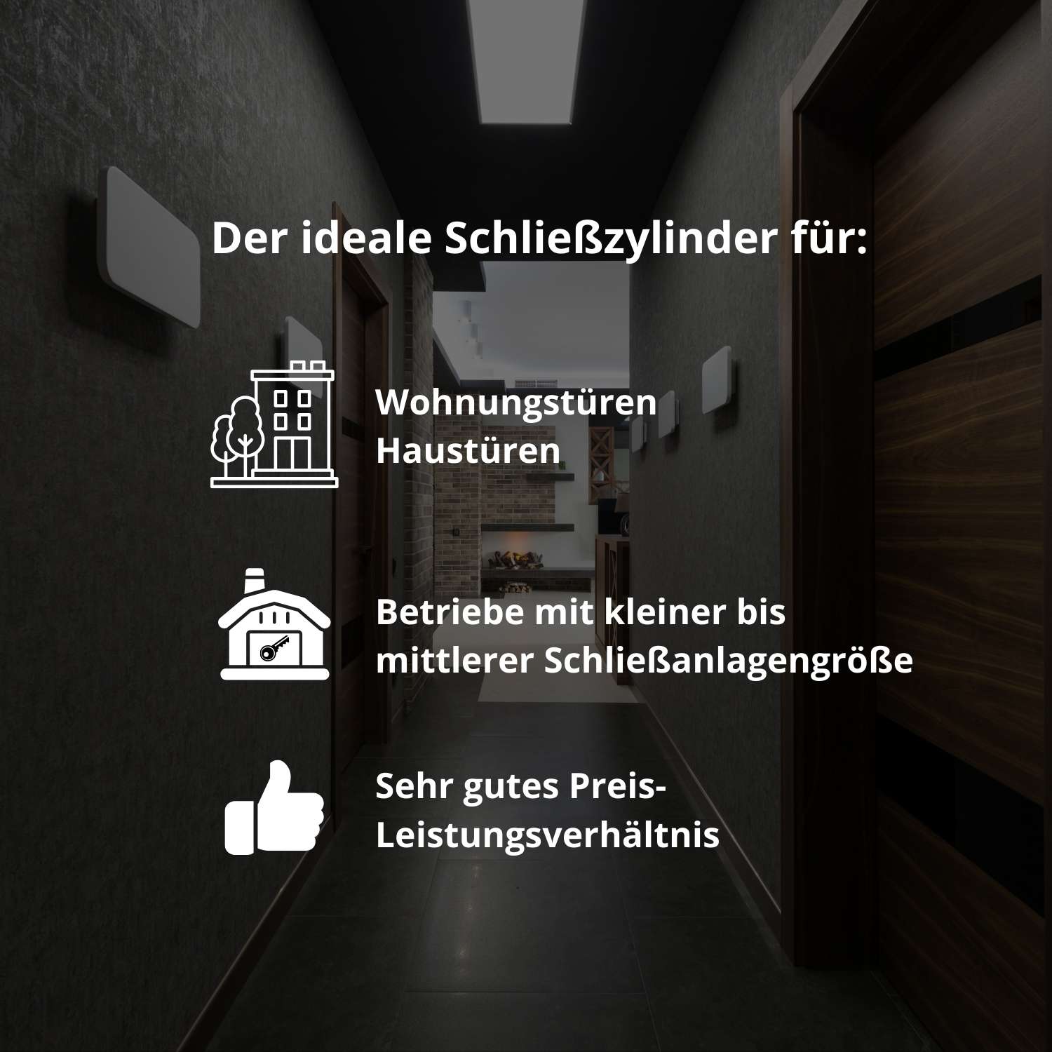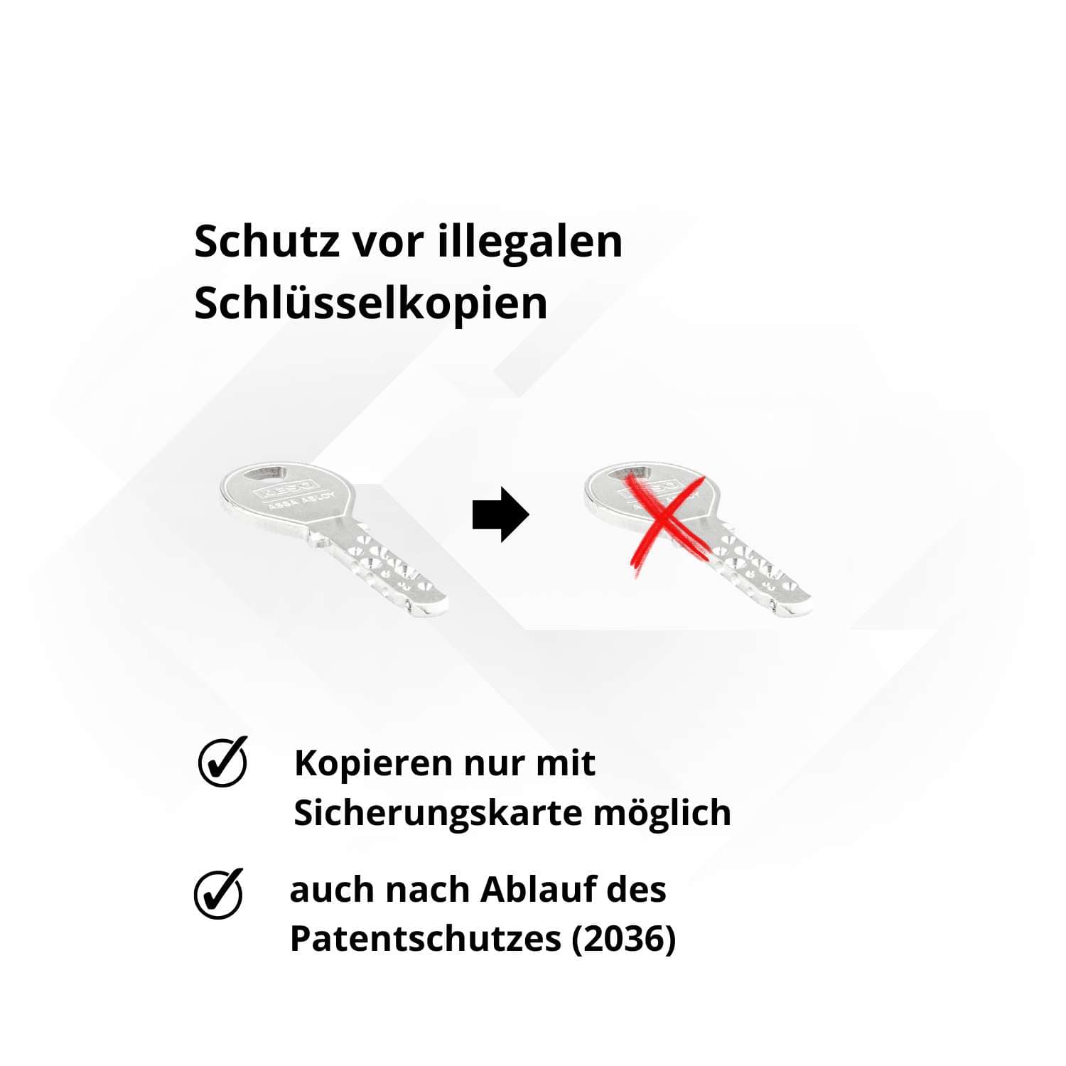 - Patentierter Kopierschutz bis 2036 – Nachschlüssel nur mit Sicherungskarte