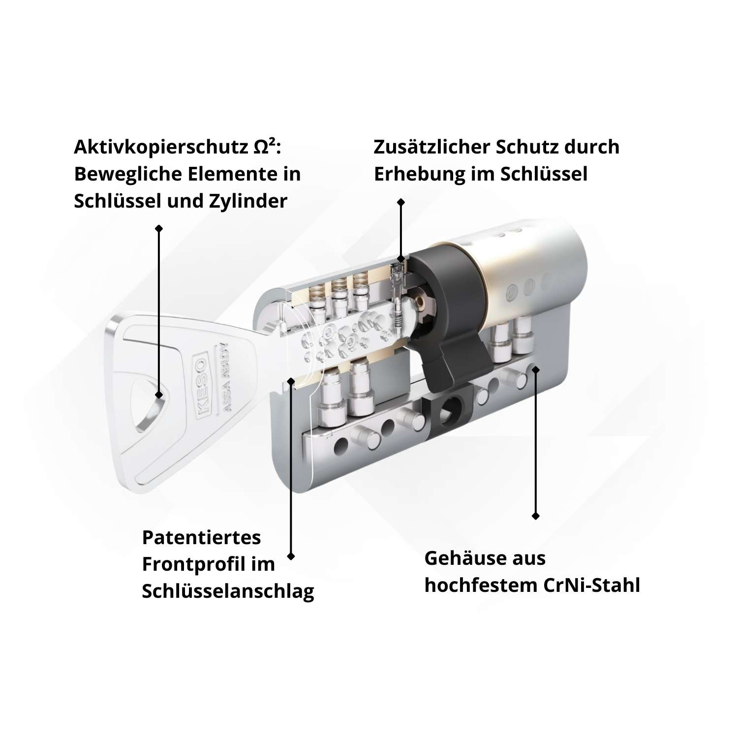 | KESO 8000 Omega² Halbzylinder Professional | Professional | VdS BZ | 15 Zuhaltungen / 3 Ebenen | Behörden, Industrieanlagen, höhersichere Zutritte |
