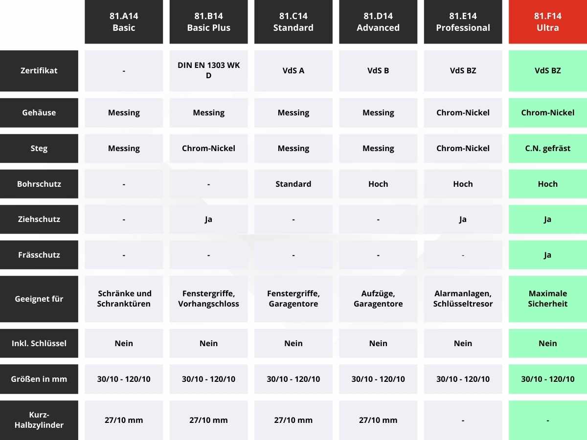 Bitte beachten Sie, dass bei der Ultra-Ausführung der Zylinder im oberen Bereich auf der Außenseite 1,5 mm länger ist.