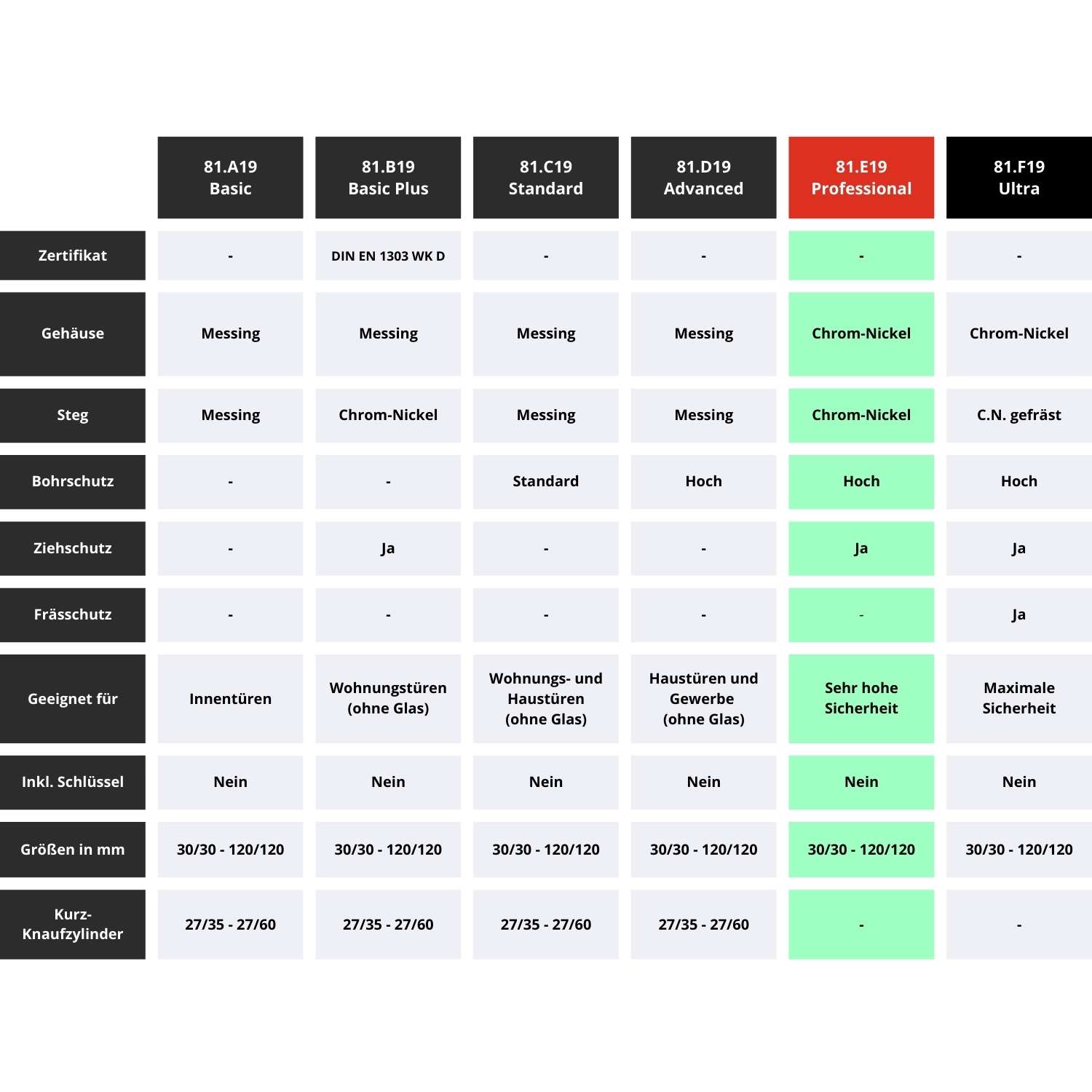 | Schutz gegen gewaltfreies Öffnen: | Hoch |
